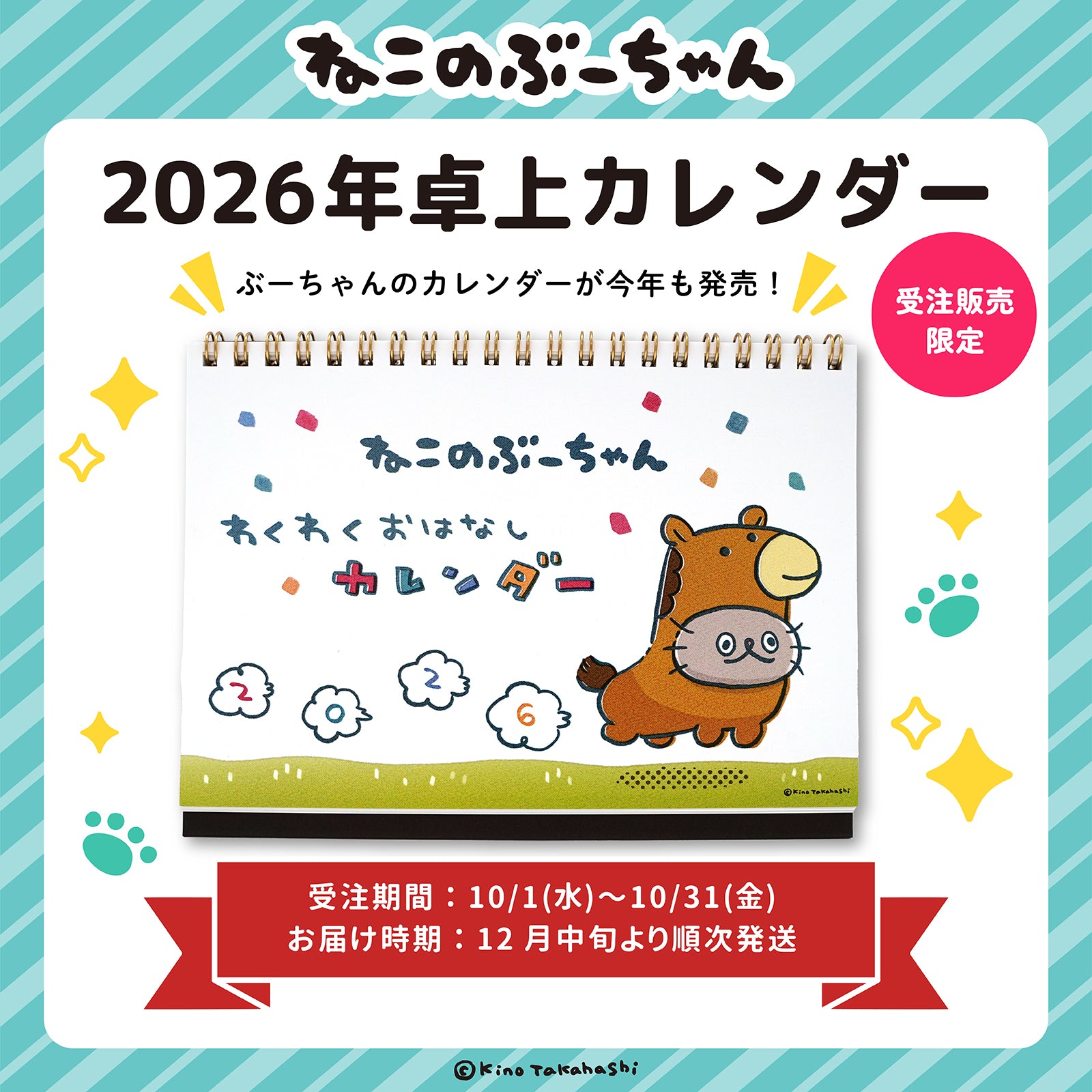 ねこのぶーちゃん2026年卓上カレンダー/高橋きの