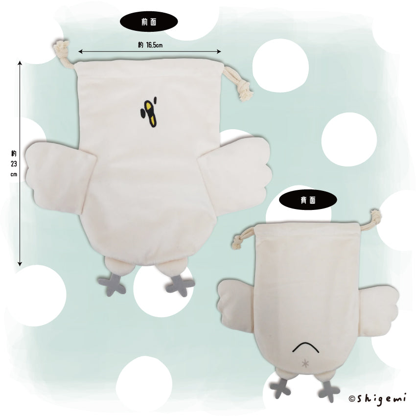 巾着の口をしぼるとキュッとされたむちっ鳥になります。